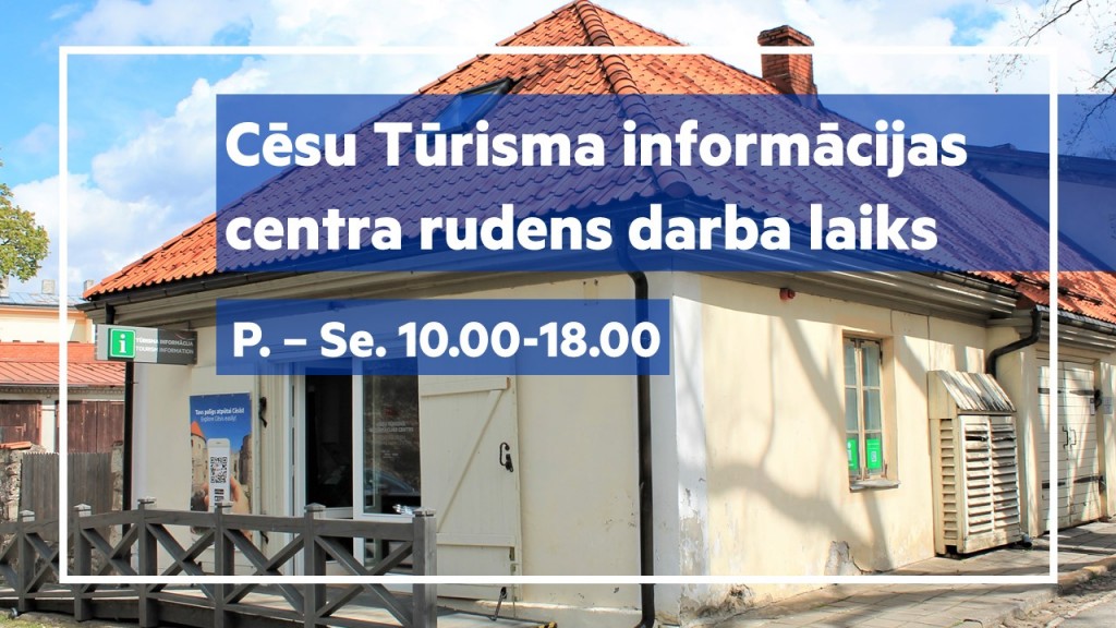 Beidzoties aktīvajai tūrisma sezonai, no 1.oktobra mainīsies Cēsu Tūrisma informācijas centra darba laiks. Turpmāk informācijas centrs darbosies no pirmdienas līdz sestdienai no plkst. 10.00 līdz 18.00. Svētdien tūrisma informācijas centrs būs slēgts.